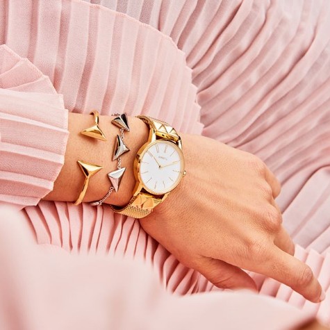 In questa stagione c’è spazio anche per le anime più rock. Per chi si sente più in queste corde, il modello ideale è sicuramente Rockers. Anche questo modello è disponibile con cinturino sia in acciaio che in pelle, con un dettaglio decisamente molto rock: le borchie!