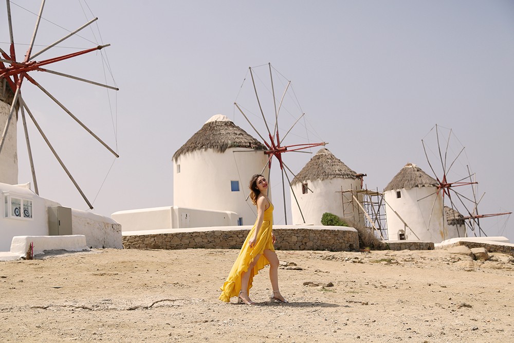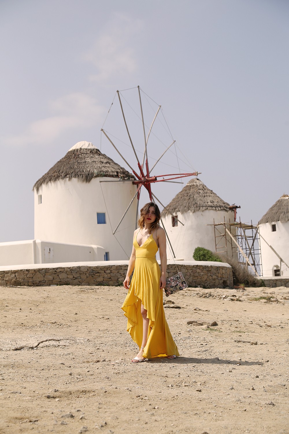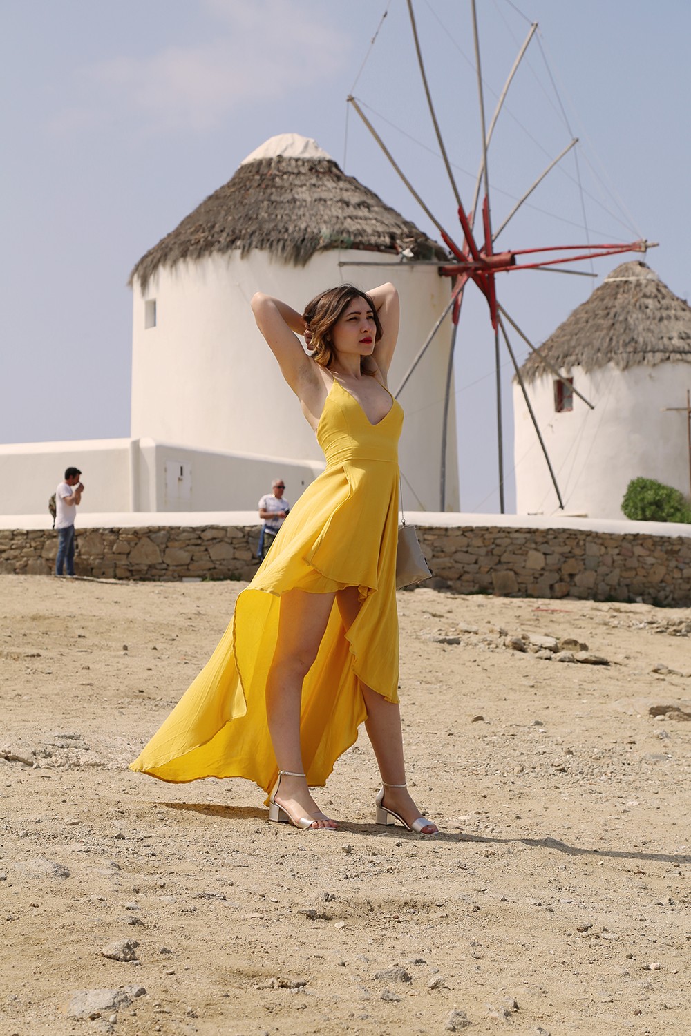 Ho ricevuto così tante richieste di informazioni su questo vestito che credo di non essere riuscita a rispondere a tutte. Vi avevo promesso però di farvelo vedere bene in un post dedicato, ed eccolo qui, pronto per voi! Tantissime foto, poche però rispetto a quelle che avrei voluto inserire. Merito di una location particolarmente bella, Mykonos, ed ovviamente di questo vestito giallo di SheIn, asimmetrico che si sposava meravigliosamente bene con tutto ciò c’era intorno, dal mare ai mulini, dalle stradine alla calce bianca delle case.